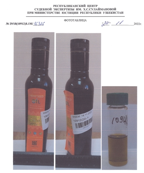 LEODAR HEMP OIL DOES NOT CONTAIN THE NARCOTIC SUBSTANCE TETRAHYDROCANNABINOL (THC) IN ITS COMPOSITION - EXPERT OPINION